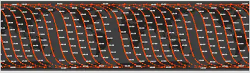 (km)Latitude maximale Inclinaison 16 112 = 1:30 274 83.4° 96.6° 15 135 = 1:36 567 82.3° 97.7° 14 157 ≈ 1:43 894 81.0° 99.0° 13 11113 ≈ 1:51 1262 79.3° 100.7° 12 2 1681 77.0° 103.0° 11 2211 ≈ 2:11 2162 74.0° 106.0° 10 225 = 2:24 2722 69.9° 110.1° 9 223 = 2:40 3385 64.0° 116.0° 8 3 4182 54.7° 125.3° 7 337 ≈ 3:26 5165 37.9° 142.1°