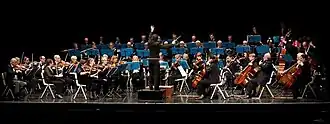 - ↑ Cinq violons, une clarinette, un harmonium.