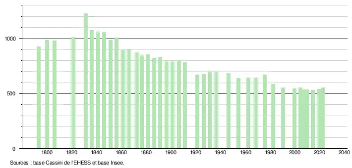 - ↑ Population municipale de référence en vigueur au 1er janvier 2025, millésimée 2022, définie dans les limites territoriales en vigueur au 1er janvier 2024, date de référence statistique : 1er janvier 2022.