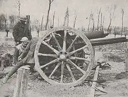 Lors des premiers tirs de barrage au matin du , 2 tiers des 18-pounder tirèrent un barrage rasant au rythme de quatre coups par minute et un tiers un barrage plongeant sur la seconde ligne allemande[46]. Ces tirs furent généralement un succès, mais à mesure que le temps se dégradait, que les pistes se transformaient en fondrières et que les cratères d'obus se remplissaient d'eau, il devint quasiment impossible aux canons d'avancer pour soutenir l'infanterie comme prévu[47].