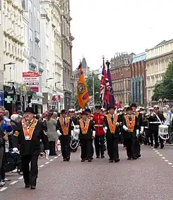 De façon récente, l'ordre d'Orange a perdu des membres dans les zones urbaines, alors que les marches loyalistes prenaient plus d'ampleur, celles-ci semblant s'accorder davantage au goût des jeunes protestants urbains pour des parades fréquentes, une plus grande tolérance à l'égard de la consommation d'alcool, les bannières et une musique paramilitaires, au détriment des rituels formels et des assemblées orangistes[7]. Un autre facteur est la présence du DUP, inversement proportionnelle : une forte présence du DUP est accompagné d'un faible engagement dans le mouvement orangiste, alors que ces deux organisations sont connues pour leur identité ultra-protestante[14], mais l'ordre d'Orange a écarté les pasteurs de l'Église presbytérienne libre liée au DUP jusque dans les années 1950, tout en maintenant des liens institutionnels, tant avec l'UUP alors majoritaire qu'avec les grandes Églises protestantes presbytérienne et anglicanes. Cependant, l'ordre et le parti d'Ian Paisley ont fait cause commune dans l'opposition à David Trimble au moment de l'Accord du Vendredi saint de 1998.