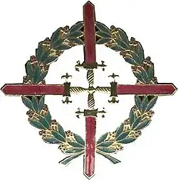 - 3e classe : Croix laurée collective (pour des unités ou organisations des forces armées ou de la Garde civile). Elle se compose :