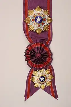![]() Cordon, insigne, étoile, médaille et insigne de boutonnière de l'Ordre de l'Étoile brillante |