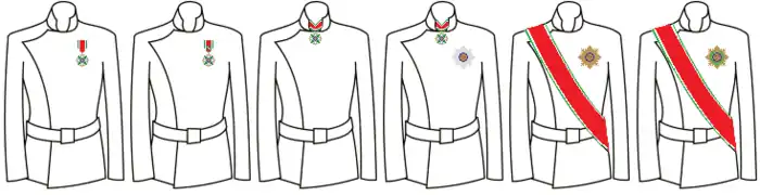 | Chevalier | Officier | Commandeur | Grand officier | Chevalier grand-croix | Chevalier grand-croix d'honneur |