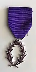 | Insigne d'officier d'académie (équivalent du futur grade de chevalier des Palmes académiques), ancien modèle d'ordonnance (avant 1955). | ||||||||||