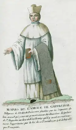 Les prémontrés portent l'habit et le scapulaire blancs, ce dernier étant serré à la taille par la ceinture de toile (contrairement aux Dominicains qui le portent libre). Ils portent également un camail arrondi à l'arrière, contrairement aux Dominicains qui portent un camail pointu dans le dos. Les chanoines avaient adopté le costume canonial - surplis de lin et chape de laine noire et l'aumusse, un capuchon de fourrure que les moines se mettaient sur la tête durant les offices en hiver.