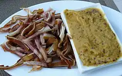 - (en) Cet article est partiellement ou en totalité issu de l’article de Wikipédia en anglais intitulé « Pig's ear (food) » (voir la liste des auteurs).