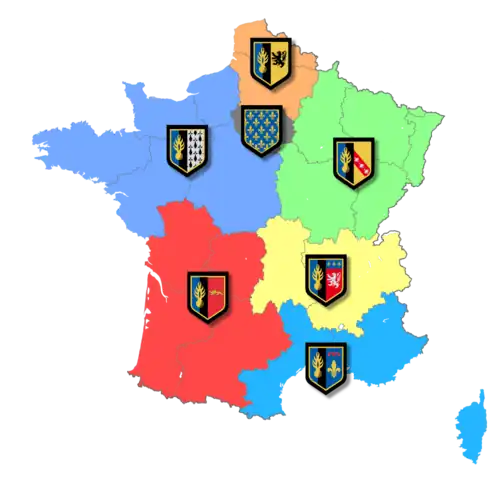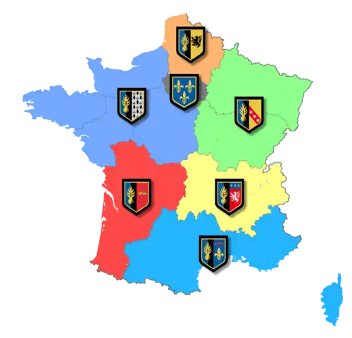 - ↑ Ce sont les régions de Gendarmerie implantées au siège de l'une des sept zones de défense et de sécurité de France métropolitaine