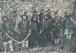 Yané Sandanski (à gauche) avec des membres du VMRO soutenant l'armée bulgare lors des guerres balkaniques.