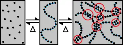 Le moyen le plus efficace pour une petite quantité de gélateur d'immobiliser une grande quantité de liquide est d'adopter une structure fibrillaire. La structure des agrégats linéaire dans le gel est déterminée par la direction et la force des liaisons associées au processus d'agrégation. Alors que dans l'eau, les attractions hydrophobes jouent un rôle majeur dans la formation des agrégats (micelles...)[10], elles ne sont plus significatives lorsqu'on se trouve en solvant organique, l'agrégation dans les organogels résulte d'autres interactions[11],[12],[13].
