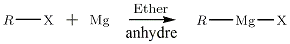 Le milieu dans lequel baigne l'organomagnésien doit être complètement anhydre : la réaction eau/RMgX est vive.