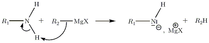 Les organomagnésiens sont une des bases, au sens de Brönsted, les plus fortes de la chimie organique avec un pKa de l'ordre de 40 à 60. R—Mg—X est un nucléophile puissant.