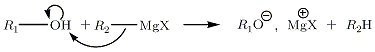 - R-CH2-CH2-O-Mg-X + H+ → R-CH2-CH2-OH + MgX+