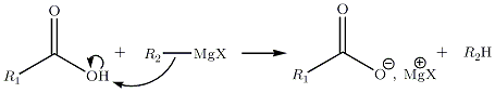 - R----Mg----X + R'-CO-Cl → R'-CO-R + Cl-Mg-X