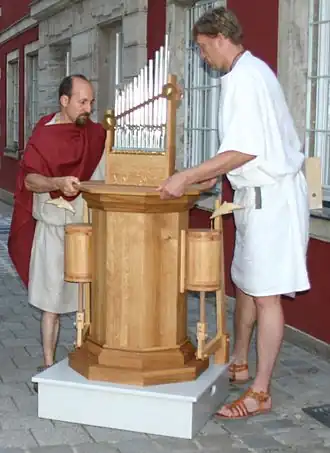 Les caractéristiques de ce type d'orgue ne nous étaient parvenues que par des mosaïques, peintures et divers écrits. En 1931 les restes d'un orgue ainsi qu'une description datant de 228 apr. J.-C. ont été découverts en Hongrie. Les éléments de cuir et de bois de l'orgue avaient disparu, mais différents éléments en métal ont permis de construire une réplique de l'orgue qui se trouve actuellement au Musée d'Aquincum de Budapest.