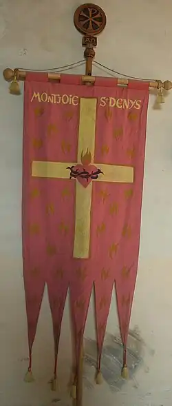 Cette volonté d'associer Charlemagne à la nécropole des rois de France explique qu'on ne se soit pas arrêté à la contradiction qu'il y a à donner le nom de la bannière dorée, que la Chanson de Roland attribue à Charlemagne, à l'étendard de l'abbaye, qui était en réalité rouge[30].