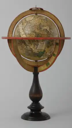 - ↑ 21 cm de diamètre (globe) pour 53 cm de hauteur (sur pied), dessiné par le cartographe Loysel.