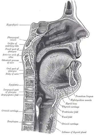À partir de reconstructions de contours de pharynx, certains scientifiques américains, dont Lieberman (en) et Crelin (en), ont rejeté l'hypothèse de l'existence d'un langage articulé chez les prédécesseurs d’Homo sapiens[3]. Leur théorie, fondée sur la nécessité d'un larynx en position basse[4] pour produire un langage articulé, est depuis infirmée : de nombreux mammifères produisent dans leurs signaux sonores des formants (ou fréquences de résonance) en mobilisant la partie haute de l'espace pharyngal ; des modélisations informatiques montrent que, même avec un larynx en position haute, les articulateurs (en) (langue, voile du palais, dents et lèvres) du tractus vocal ont un degré de liberté tel qu'il est possible de les coordonner afin de produire une large gamme de sons articulés ; certains fossiles de Néandertaliens montrent des larynx en position basse[5].