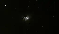 L'objet sans doute le plus incontournable de la constellation est M42, plus connu sous le nom de « grande nébuleuse d'Orion ». Cette vaste région de formation stellaire est située à environ 1 350 années-lumière de la Terre et sa magnitude apparente égale à 3,7 la rend aisément distinguable à l'œil nu, sous la forme d'une faible tâche laiteuse, sous un ciel sombre à l'écart de la pollution lumineuse des villes. Aux jumelles, la nébuleuse révèle un système gazeux et de jeunes étoiles, système dominé par un groupe de quatre étoiles géantes connu sous le nom de trapèze d'Orion.