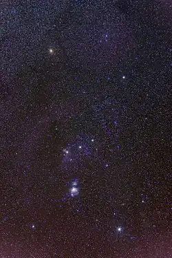 Orion (« le Chasseur ») est une constellation située quasiment sur l'équateur céleste.