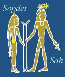 Les Égyptiens de l'Antiquité attachaient une grande importance au lever de l’étoile Sopdet, qui correspond à Sirius, qui annonçait la crue du Nil. Ils pouvaient se préparer à cet événement crucial pour la vie de leur pays dès qu’apparaissaient les étoiles du Baudrier d’Orion, nommées Sah, « l’Homme qui marche », et dont le corps complet occupe la partie australe de l’Ωρίων des Grecs et la constellation de Λαγωός, le « Lièvre ». Il n’y a par conséquent aucune surprise dans le fait que le couple de dieux correspondant à ces étoiles, à savoir Isis and Osiris, occupent une place centrale dans la mythologie égyptienne[28],[29].