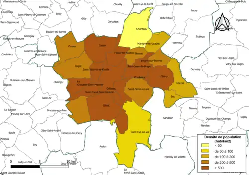 | La Chapelle-Saint-Mesmin | 45075 | Chapellois | 8,96 | 10 492 (2022) | 1 171 |