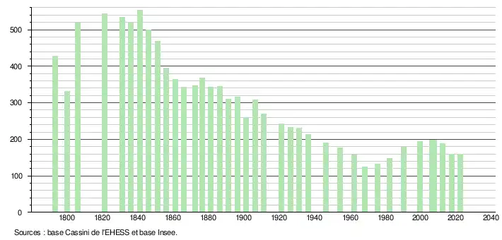 - ↑ Fiches Insee - Populations de référence de la commune pour les années 2006, 2007, 2008, 2009, 2010, 2011, 2012, 2013, 2014, 2015, 2016, 2017, 2018, 2019, 2020, 2021 et 2022.