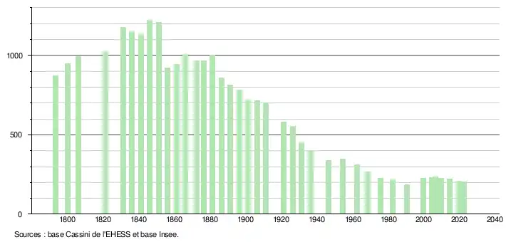 - ↑ Fiches Insee - Populations de référence de la commune pour les années 2006, 2007, 2008, 2009, 2010, 2011, 2012, 2013, 2014, 2015, 2016, 2017, 2018, 2019, 2020, 2021 et 2022.