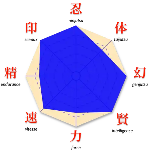 Nature du chakra: Fûton, Mokuton (suiton et doton), et probablement tous les éléments: Katon, Raiton