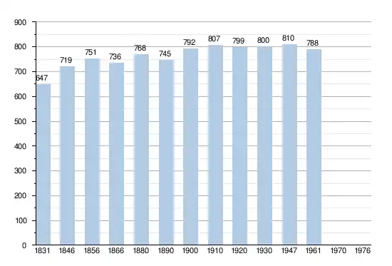 - Sources : INS, Rem. : 1831 jusqu'en 1970 = recensements, 1976 = nombre d'habitants au 31 décembre.