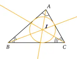 De nombreux théorèmes géométriques utilisent le théorème de Pythagore et donc l'orthogonalité pour pouvoir être démontrés. Le fait que les trois bissectrices d'un triangle soient concourantes et que leur point commun soit le centre du cercle inscrit dans le triangle provient de la propriété d'orthogonalité de la bissectrice déjà rencontrée pour construire deux droites perpendiculaires.