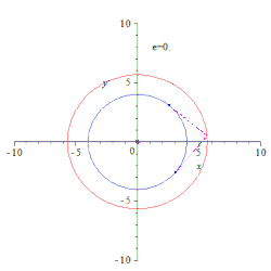 on reconnaît la distance α dans l'espace des paramètres à laquelle apparaît une tangente orthogonale à . Il s'avère que la distance est indépendante du paramètre t, à savoir α = ± π2