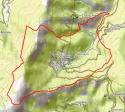 - Au nord, ses limites sont représentées par le ruisseau d'Olivaio, puis par le ruisseau de Vagnaninco d'où elles suivent une petite ligne de crête rejoignant la confluence des ruisseaux de Casacconi et du Raimondasco à l'extrémité septentrionale de la commune.