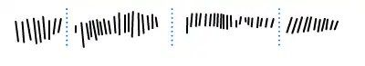 La colonne peut être divisée en quatre groupes. Chaque groupe possède respectivement 19, 17, 13 et 11 entailles.