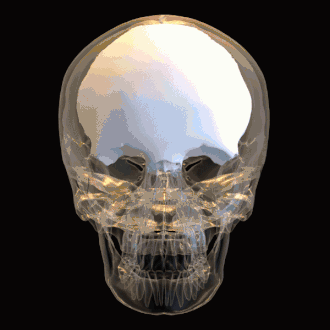 - de chaque côté, en arrière et au-dessus par rapport à l'échancrure nasale, les arcades orbitaires ; concaves vers le bas, elles se prolongent en dehors et en dedans par des processus