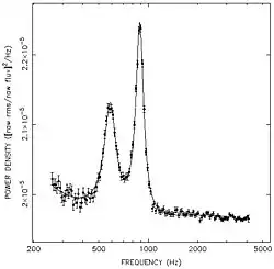 Il a été observé que la variabilité spectrale de ces étoiles à neutrons correspondait à des changements dans les QPO. Les fréquences QPO typiques se situent entre environ 1 et 60 Hz. Les oscillations les plus rapides ont été trouvées dans un état spectral appelé la branche horizontale, et on pensait qu'elles résultaient de la rotation combinée de la matière dans le disque et de la rotation de l'étoile à neutrons. Pendant la première phase de sa vie, les physiciens pensaient que l'étoile se rapprochait de sa luminosité d'Eddington à laquelle la force du rayonnement pouvait repousser le gaz accrété. Cela pourrait donner lieu à un type d'oscillation complètement différent. Les observations commençant en 1996 avec le Rossi X-ray Timing Explorer (RXTE) pouvaient détecter une variabilité plus rapide, et il a été constaté que les étoiles à neutrons et les trous noirs émettent des rayons X qui ont des QPO avec des fréquences allant jusqu'à environ 1000 Hz. Le RXTE a également observé des QPO à doubles pics, dans lesquels deux oscillations de même puissance apparaissaient à des amplitudes élevées[3].