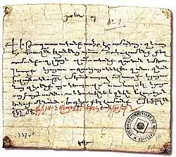 Privilège accordé le 7 janvier 1314 par le roi arménien de Cilicie, Oshin, aux marchands de Montpellier. Le recto porte la signature du roi marquée en rouge. Le texte présente un style hybride entre le bolorgir et le notrgir. Conservé aux Archives Municipales de Montpellier.Alliances et Conflits: Oshin a démontré l'importance des alliances européennes pour la survie de l'Arménie cilicienne. Il renforça ses alliances en se mariant avec la royauté de Chypre et sollicita l'aide de leaders européens, dont le pape Jean XXII, Philippe le Bel, et Pierre II de Sicile, pour une croisade en Terre Sainte. Informé de ses intentions, le Sultan de Bagdad et d'Égypte lança une armée contre lui en 1319, que Oshin tailla en pièces. Son isolement face à l'Égypte des Mamelouks après la mort de Khan Gazan illustre la complexité des relations internationales de l'époque, où il dut combattre seul contre les Égyptiens et les Karamanides[4],[1].