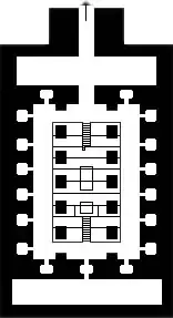 L'entrée se fait par l'ouest par un couloir qui s'étire sur 100 mètres en s'enfonçant dans le sol. Les parois de briques sont recouvertes par des textes funéraires. Après avoir passé deux petites salles, un second couloir (à angle droit avec le premier) mène vers une grande salle transversale, mesurant vingt mètres sur six, ornée par des images et des textes du Livre des morts. On parvient ensuite dans la grande salle du cénotaphe.