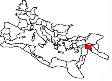 L'Osroène est annexé comme province romaine par Caracalla en 216[22]. L'Osroène passe peut-être en 244 sous la mouvance perse sassanide par le traité de paix désavantageux signé par Phillipe, empereur fraîchement proclamé et pressé de regagner Rome[23]. Valérien y est battu et capturé par le sassanide Chapour Ier à la bataille d'Édesse en 260. La région passe sous le contrôle de Palmyre à la suite des victoires d'Odénat sur les Perses en 262. Après les succès de Carus puis de Galère contre les Perses à la fin du IIIe siècle, la province d'Osroène est intégrée dans le diocèse romain d'Orient.