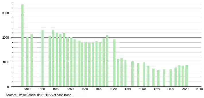 - ↑ Fiches Insee - Populations de référence de la commune pour les années 2006, 2007, 2008, 2009, 2010, 2011, 2012, 2013, 2014, 2015, 2016, 2017, 2018, 2019, 2020, 2021 et 2022.