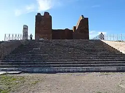 Édifié sous Tibère au sud du forum, ce monument au culte impérial naissant ne conserve que des fondations en opus reticulatum, la statue personnifiant Rome sur le mur du fond et un vestige de fronton arrière, reconstruit[68].