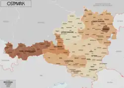 Ostmark (« marche de l'Est ») est la traduction allemande du terme Ostarrīchi, traduction en langue vernaculaire (probablement en vieux haut allemand) du latin « marchia orientalis », qui apparaît dans un acte de donation du établi par l'empereur Otton III. Ce nom se réfère au margraviat d'Autriche, une marche du duché de Bavière, qui est devenu un duché autonome en 1156. Il y avait également une autre marche appelée « marchia orientalis », la marche de l'Est saxonne (ou marca Geronis), un territoire habité par des Slaves (« Wendes ») le long de l'Elbe moyen et la Saale.