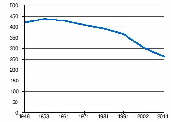 | 420 | 437 | 429 | 408 | 391 | 366 | 300[2] | 262[1] |
