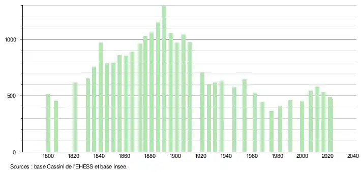 - ↑ Fiches Insee - Populations de référence de la commune pour les années 2006, 2007, 2008, 2009, 2010, 2011, 2012, 2013, 2014, 2015, 2016, 2017, 2018, 2019, 2020, 2021 et 2022.