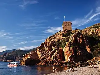 - le rocher de Porto, porteur d'une tour génoise avec, à son pied, l'embouchure du Porto ;