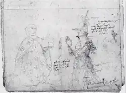 Lucien Febvre écrit : « J’ai peur qu'on ne se représente pas assez ce qu'était, dans l'échelle des valeurs, une exploitation aussi énorme pour le temps que celle des salines de Salins. Imagine-t-on l'ampleur, pour le temps, de cette concentration autour du puits, de tout un peuple d'ouvriers et d'ouvrières, de menuisiers, de chaudronniers et de forgerons, sans cesse occupés, les uns à confectionner les rouages en bois des pompes élévatrices, les autres à fabriquer les roues, les conduites, les cuves de bois, à tenir muire, les autres enfin à entretenir en bon état ces immenses chaudières dans lesquelles se mettait à cuire et à bouillir l'eau muirée », cité par[A 6]. - ↑ Il avait tout un groupe de Lombards qui lui étaient attachés soit comme conseiller, tel Ardeçon d'Ivrée, les autres comme valets de chambre, tel Scaglia de Florence, les autres comme trésoriers, tel Landuche de Florence[D 3].