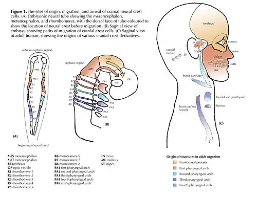 Cette malformation pourrait s'expliquer par un défaut de migration des cellules de la crête neurale lors de la blastogénèse. Ce défaut retentit sur la formation du premier arc pharyngé[1].