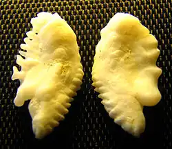 | Espèce | La morphologie des otolithes est très diversifiée et se trouve donc être également caractéristique d'un genre, voire d'une espèce, de poisson donné. L'examen des otolithes retrouvés dans l'estomac de grands piscivores permet également d'identifier leur régime alimentaire car la composition chimique des otolithes permet de résister à l'attaque des enzymes digestives[5]. De même, les ichtyopaléontologues identifient les otolithes trouvés dans les habitats pour reconstituer le régime alimentaire des premiers Hommes[4]. |