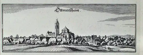 - Le village d'Ottmarsheim est né le long de l'ancienne voie romaine qui reliait Bâle à Breisach. La découverte en 1909 d'une nécropole des VIe et VIIe siècles indique que le village existait déjà à l'époque mérovingienne. Le nom d'Ottmarsheim est cité pour la première fois dans un manuscrit de l'Abbaye de Murbach en 881. Pendant longtemps, la localité demeure le centre des possessions des Habsbourg en Alsace. Siège d'une douane importante - et donc source de revenus importants - elle est convoitée par de nombreuses familles nobles. Ce qui assura sa réputation au cours des siècles suivants, c'est la fondation, au XIe siècle de son Abbaye et la construction de son église entre 1030 et 1049. Village à vocation essentiellement agricole, Ottmarsheim voit, de 1851 à 1941, sa population diminuer progressivement. Mais au cours de la seconde moitié du XXe siècle, la localité va se transformer profondément avec le creusement du Grand Canal d'Alsace (1947), la construction par E.D.F. d'une usine hydroélectrique (1948-1952) et la création de la zone portuaire (1995). De grosses industries s'implantent alors sur le territoire de la commune, lui apportant de nouvelles sources d'activités.