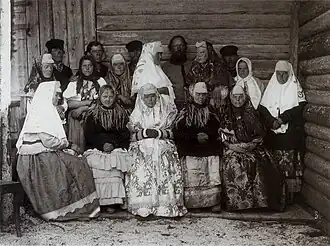 Groupe de paysannes en habits de fête dans l'ouïezd de Kargopol (années 1910).